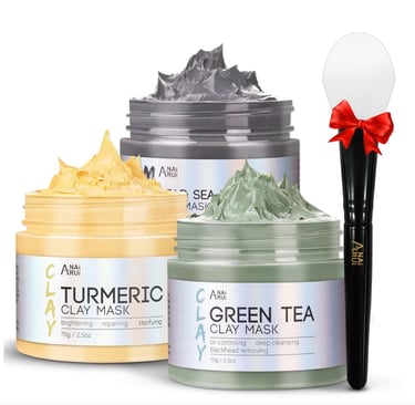 This set includes a turmeric clay mask, a green tea face mask, and a Dead Sea mud mask, designed to help cleanse the skin, refine the look of pores, and reduce the appearance of blackheads, especially for oily skin.