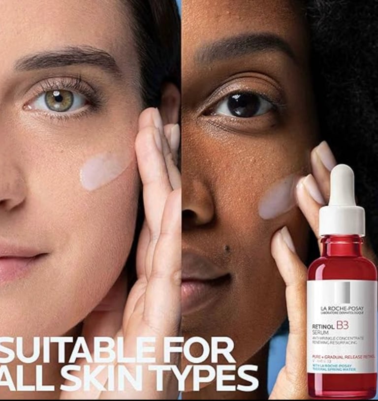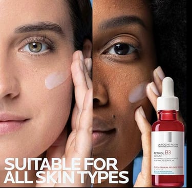 The La Roche-Posay Pure Retinol Face Serum, formulated with Vitamin B3, helps improve the appearance of fine lines, wrinkles, and visible signs of premature sun damage.
